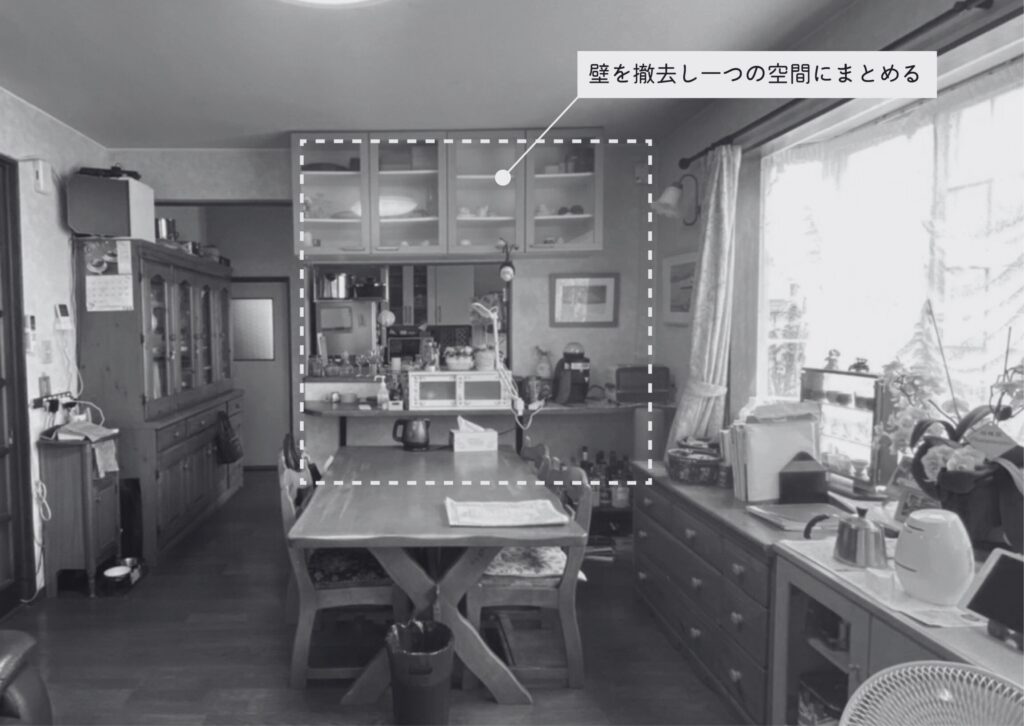 ✓ キッチンの壁を撤去し、視界と動線を改善